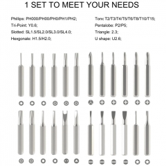 Material crafted from durable CR-V and S2 alloy steel, these professional-grade bits are Designed to handle repairs on mobiles, laptops, cameras, watches, and various other gadgets with precision and reliability.