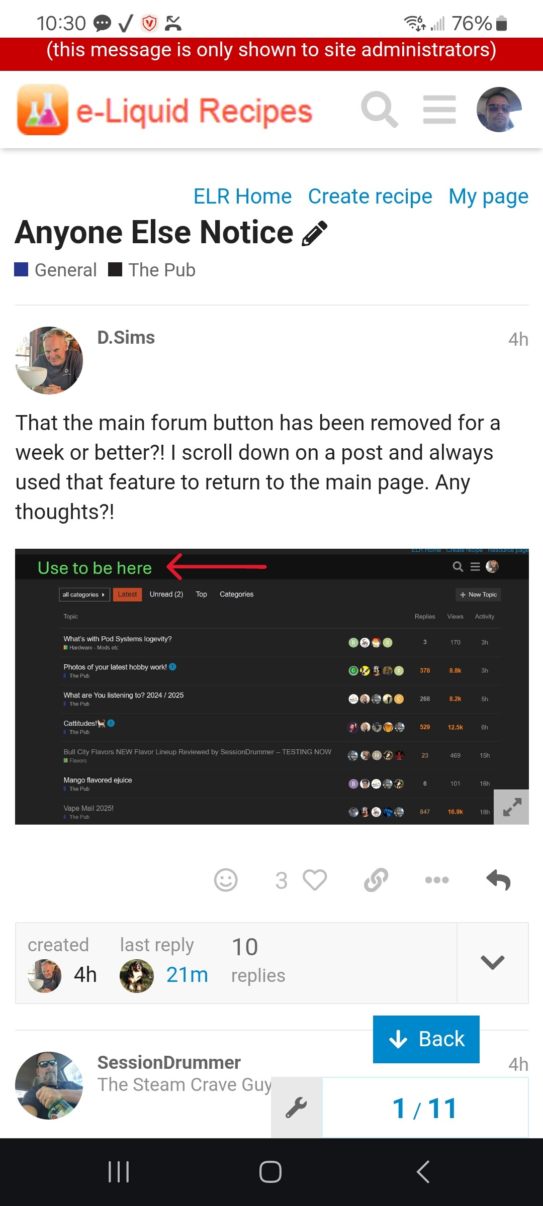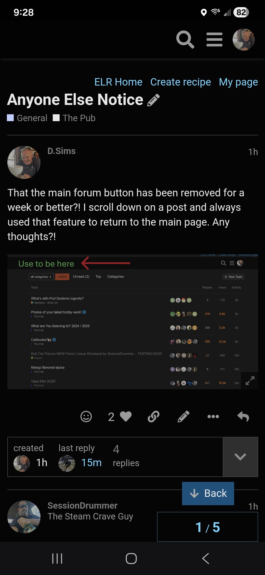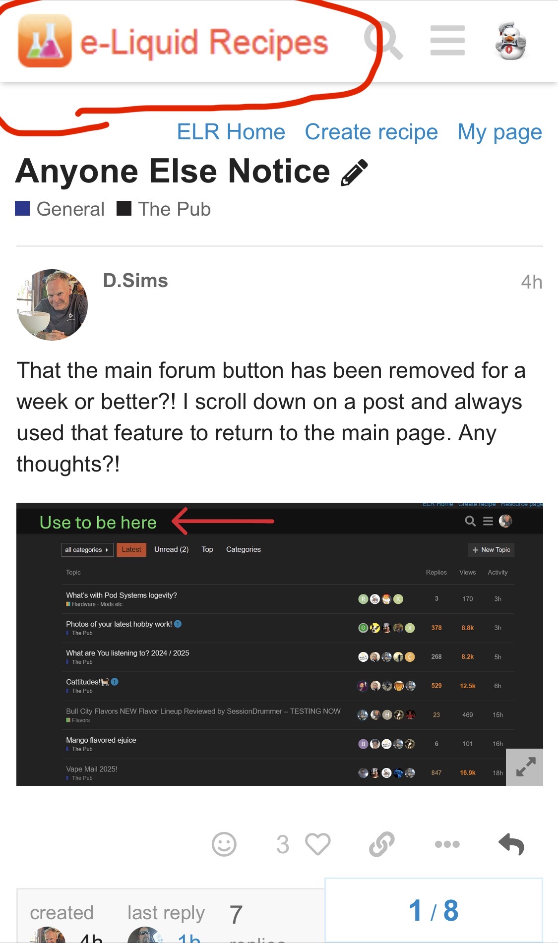That the main forum button has been removed for a week or better?! I scroll down on a post and always used that feature to return to the main page. Any thoughts?!