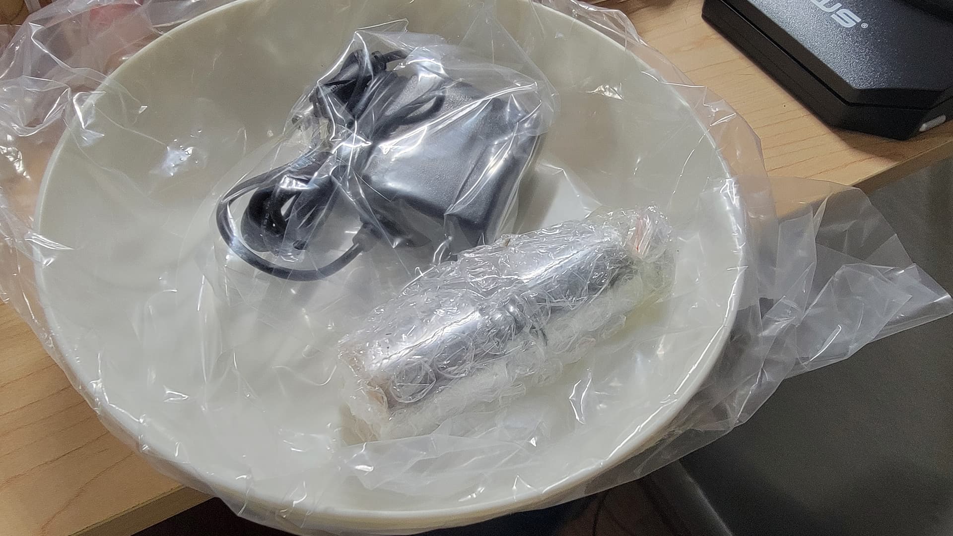 Bowl (I throw mine out), transformer, and (2) CAL weights …
