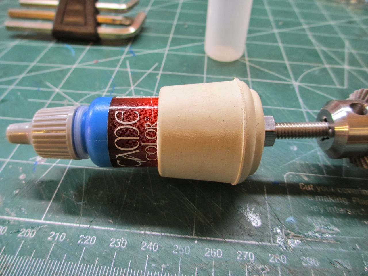 Just use a variable speed drill. I use my Ryobi with an old battery that doesn’t hold a charge very well and then I don’t accidently over speed it and spin it up over the top of the bottle.