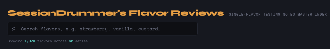 Alright, things have quieted down a bit here, so it seemed like a good time to get this done. People have been asking me about this forever, but it was a BIG task, so I kicked the can down the road. If you’ve been wondering why I’ve been posting some previously reviewed flavors in their own threads, I’ve been working on this. I have FINALLY, completed a TOTAL LIST of every flavor I’ve ever reviewed. Yes, a COMPLETE LIST, and it’s searchable, with links !!!