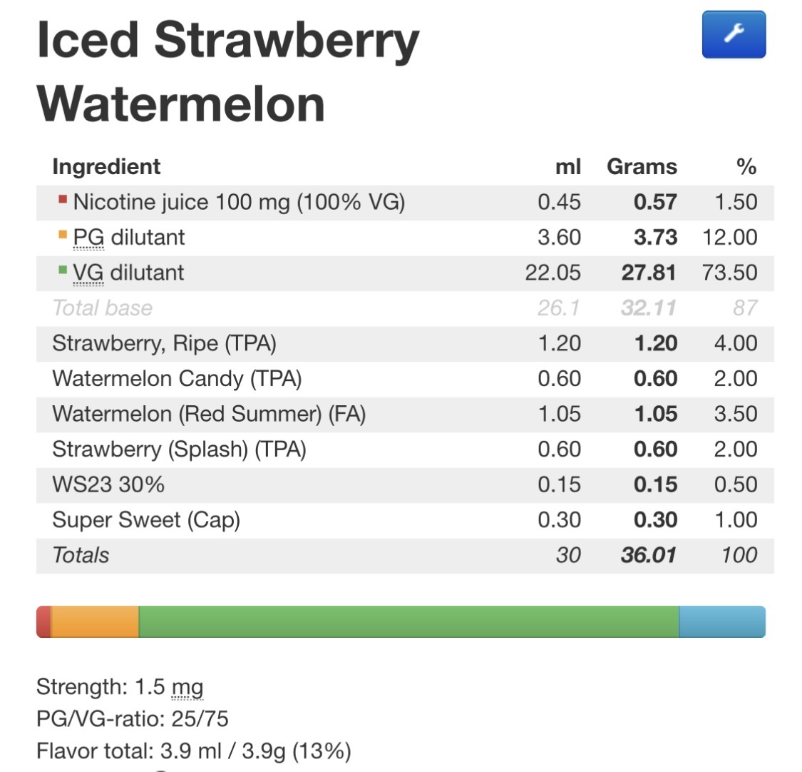 So i decided to do a mix with ssa double watermelon, tfa watermelon candy, capella super sweet and ws23 and it actually tastes decent, but it could use just a smidge more flavor. However, i dont want to overdo it and fuck it up.
