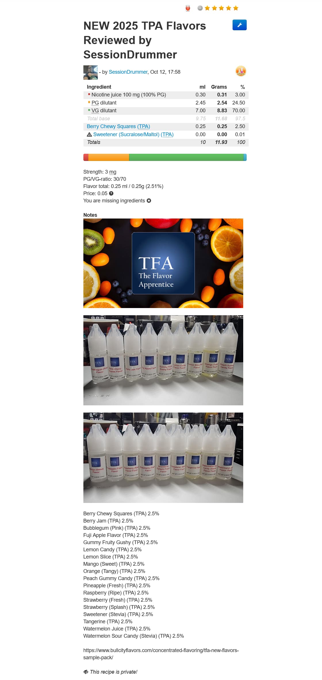 Happy Mixing guys/gals, and please do NOT hesitate to test flavors yourselves, and keep notes. Sharing them, makes it better for EVERYONE, as you might actually taste things, or describe them in a way that no one else does, and that can really help us all out.