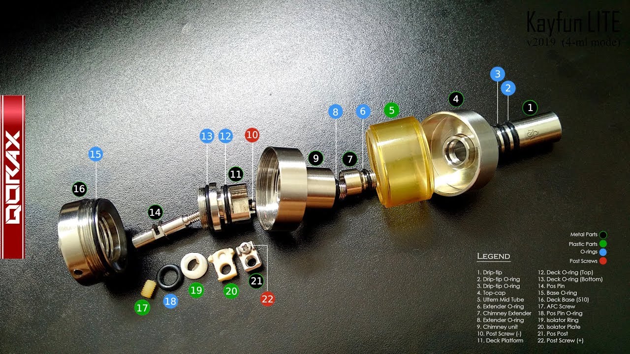 I generally wick with rayon and because of that I wick rather tightly through the coils (3mm for the SC) and that leaves plenty of tail (even after thinning) to wick appropriately. It was missing an O ring or two and I recall having a hard time finding any diagram or illustration of where they all belong. One thing you almost never see a reviewer doing (especially with a fairly complicated atty) is do a complete tear down and instructional on where all the O rings should go. The Kayfun V5 has some nuances with regard to two of the O rings also, it is however less complicated then the SC products.