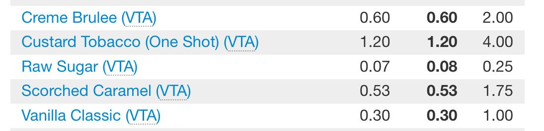 I originally got them @ vape train. There is VTA Custard tobacco which is available @ nomz. Also Discounted @ Nomz. Then USA tobacco which is similar to a Marlboro red, and Sahara which of course it a middle eastern tobacco, both are available at Kings Flavours UK. There is also Cigar Leaf which is really good but sold out everywhere.