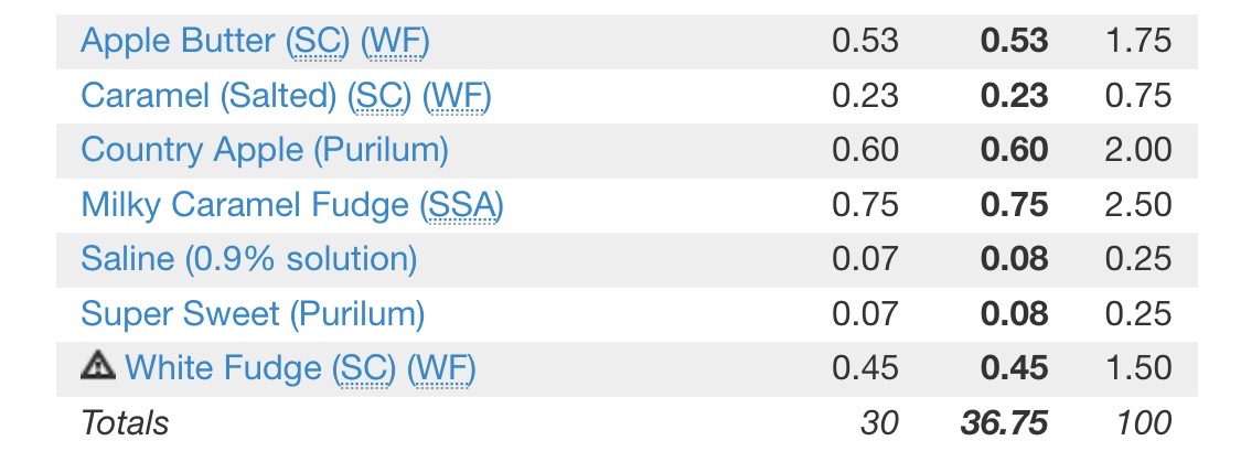Everyoneās got their own tastes for sure, and the Lemons do settle down, just a bit, BUT, and thereās ALWAYS a but, BUT, the Lemon combo worked TOO damned good not to throw it right back into another mix. TBH I HAD had still been leaning more heavily on CAP Golden Butter, and FA Butter, BUT, after you re-affirmed the glorious-ness of the VTA Butter Base, Iām starting to lean on it more often than not, and in this one as well.